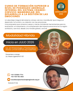 CURSO FORMACIÓN DE POSTGRADO ABORDAJE INTEGRAL DEL SISTEMA CRÁNEO-CÉRVICO-MANDIBULAR: DEL DESARROLLO EMBRIOLÓGICO A LA GESTIÓN DE LAS EMOCIONES (JULIO 2026)